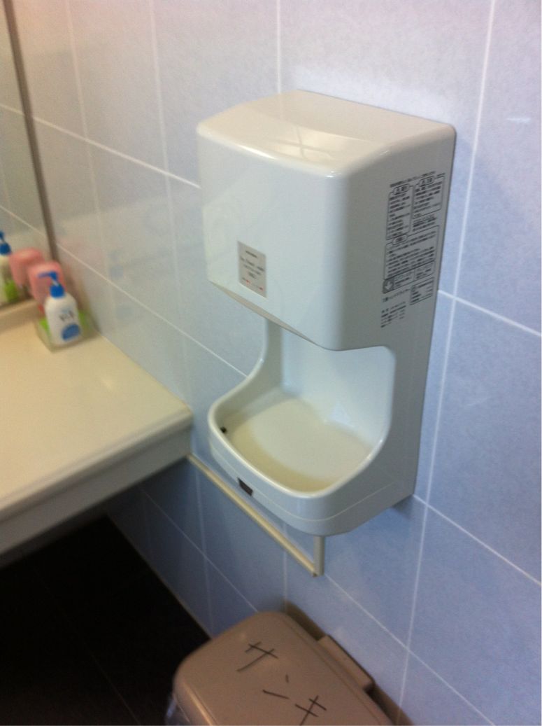 んだもんで、ドライヤーがわりになるかも?という事で、ひと気のないサンキのトイレで、これに頭を突っ込んで温風を当ててみた件。